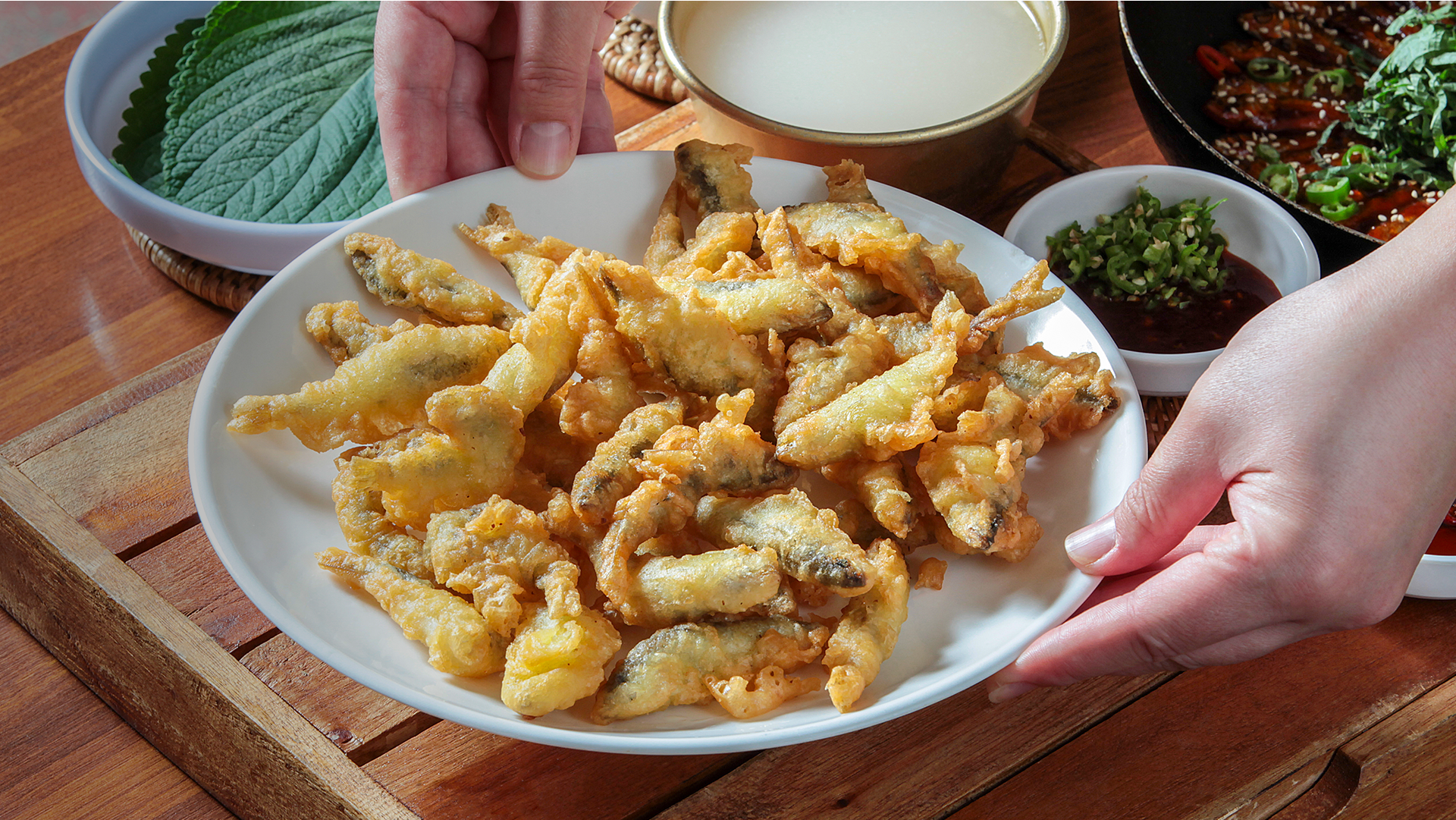- 작은 민물고기를 바삭하게 튀겨 고추장 양념으로 버무린 대표 안주 메뉴!