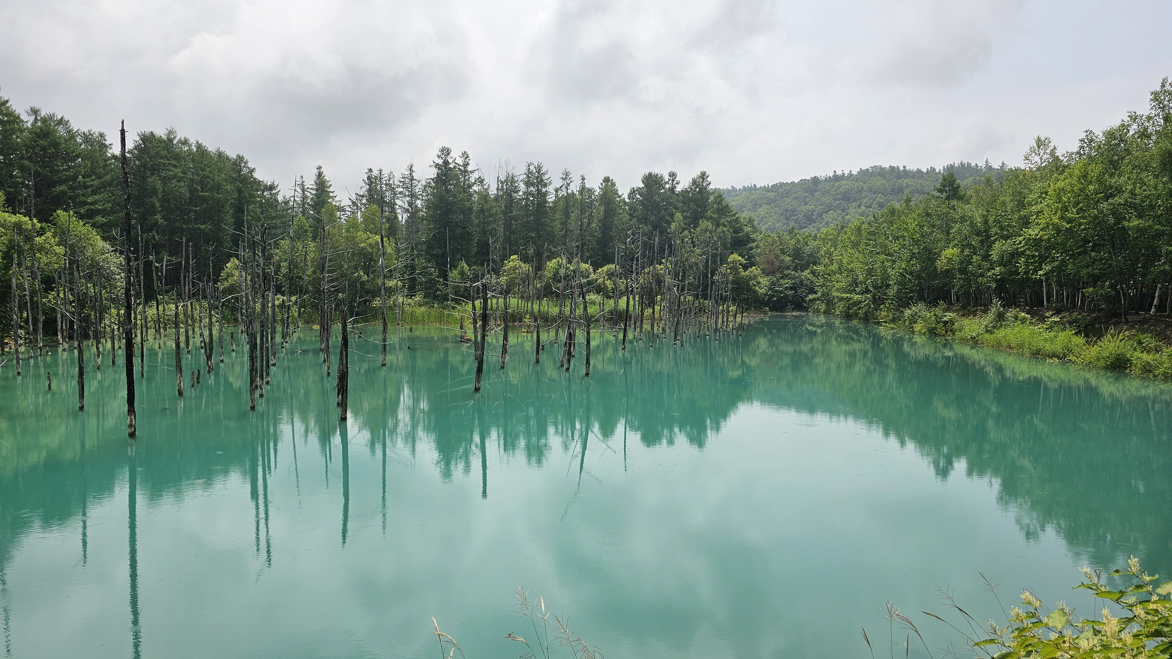- 블루 팟(Blue Pond): 토카치 산 화산재로 생긴 푸른 색 호수. 은빛 가문비 나무들이 물속에 자리 잡아 신비한 분위기를 자아내요